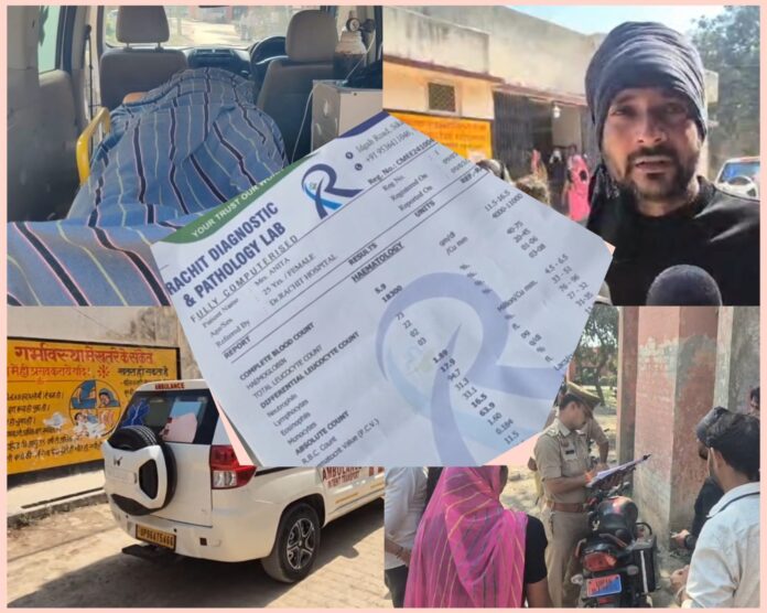 परिजनों का आरोप है कि महिला की मौत रचित हॉस्पिटल में ही हो चुकी थी, लेकिन जिम्मेदारी से बचने के लिए अस्पताल प्रशासन ने उन्हें अलीगढ़ रेफर करने की बात कहकर गुमराह किया।