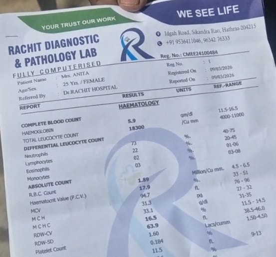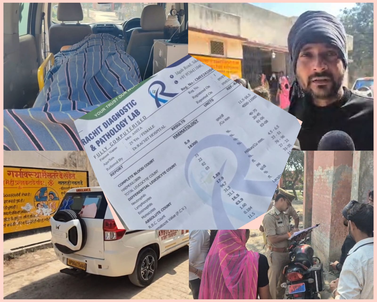 महिला के पति अशोक कुमार पुत्र योगेंद्र कुमार निवासी चमनपुर कचोरा के अनुसार, सोमवार सुबह अनीता देवी के पेट में अचानक तेज दर्द उठा था, जिसके बाद उन्हें उपचार के लिए रचित हॉस्पिटल में भर्ती कराया गया। मृतका के पति का आरोप है कि अस्पताल में करीब डेढ़ घंटे तक उपचार किया गया अस्पताल कर्मियों ने महिला की हालत गंभीर बताते हुए उन्हें तत्काल अलीगढ़ ले जाने की सलाह दी।